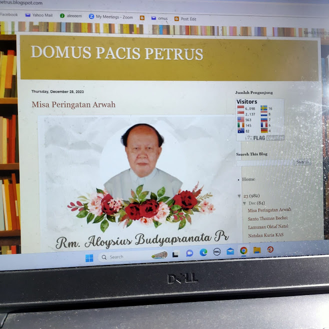 Pada Kamis 28 Desember 2023 jam 09.00 ada pesan WA masuk di HP Rm. Bambang. Pesan itu berasal dari seorang ibu sepuh yang selalu mengikuti status Rm. Bambang. Beliau setiap hari juga selalu membaca https://domuspacispetrus.blogspot.com yang selalu menayangkan RENUNGAN HARIAN, Orang Kudus, HISTORIA DOMUS atau PASTORAL KETUAAN. Itulah tiga hal yang selalu ditayangkan oleh Rm. Bambang dalam narasi singkat yang disebar lewat FB, E-mail, dan WA. Bahkan untuk RENUNGAN HARIAN dia juga menyebarkan dalam TikTok. Barangkali karena hal-hal rutin yang dibuat itu biasa rutin tersebar, sementara itu berbagai berita kegiatan Domus seperti menerima tamu baik rombongan maupun perorangan dan juga ikut mengurus even-even kegiatan Domus, ibu sepuh itu menulis :